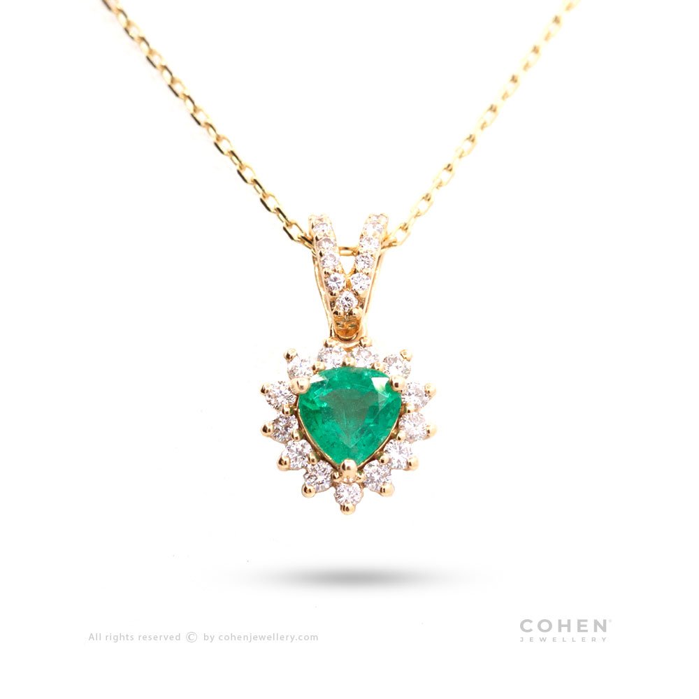 Emerald stone necklace on a heart cut with diamonds