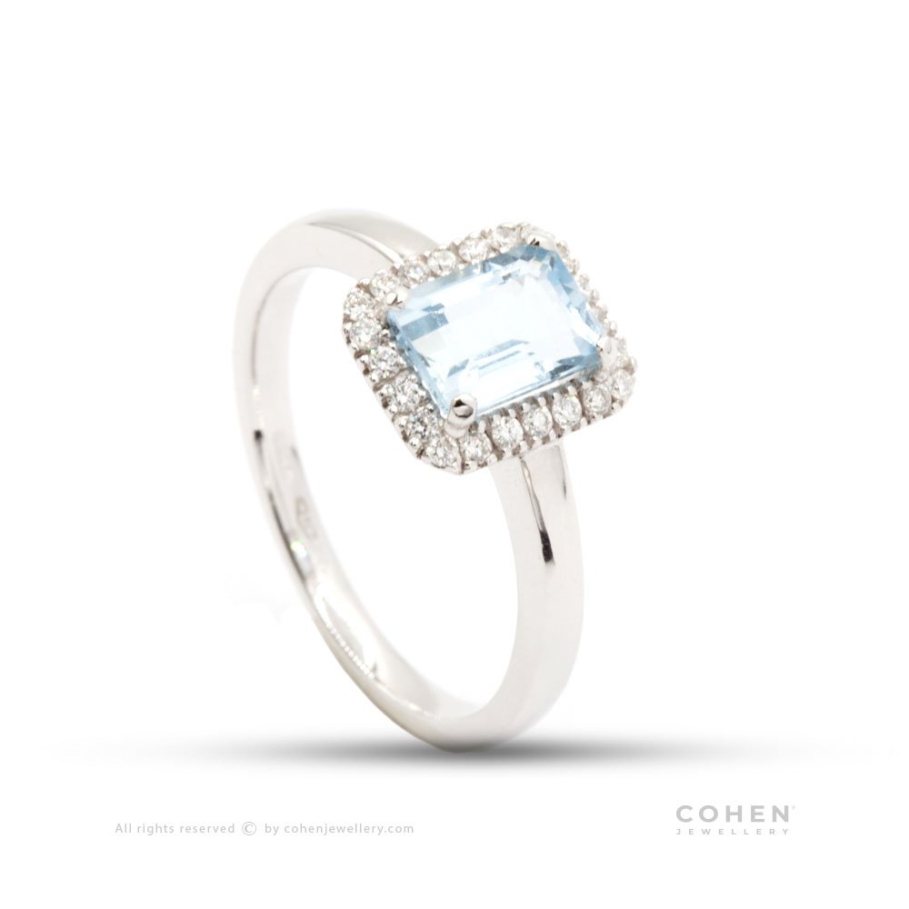 Ring featuring Aquamarine stone on a emerald cut with diamonds