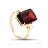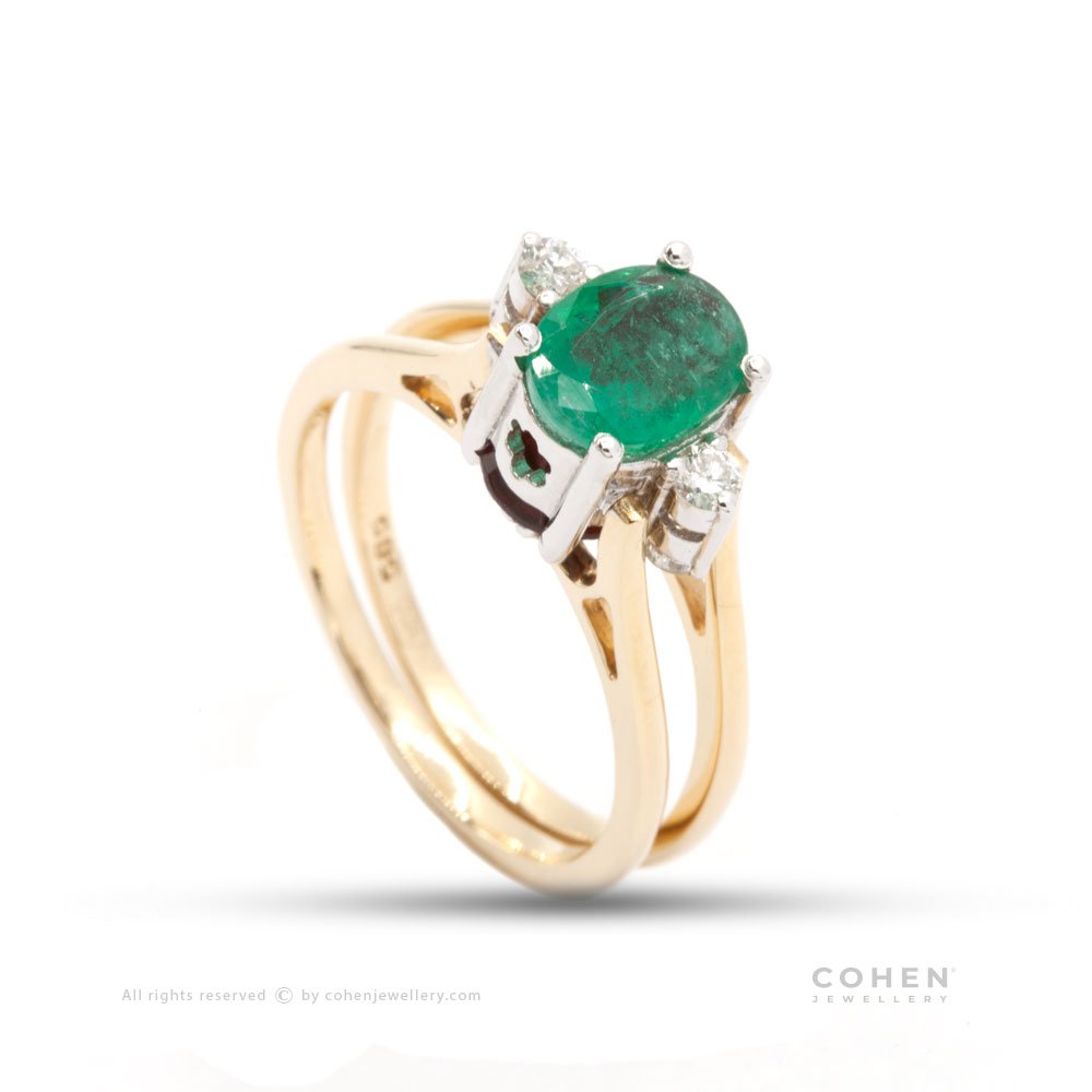 Two sided ring with a garnet on one side and ermerald on the other with diamonds
